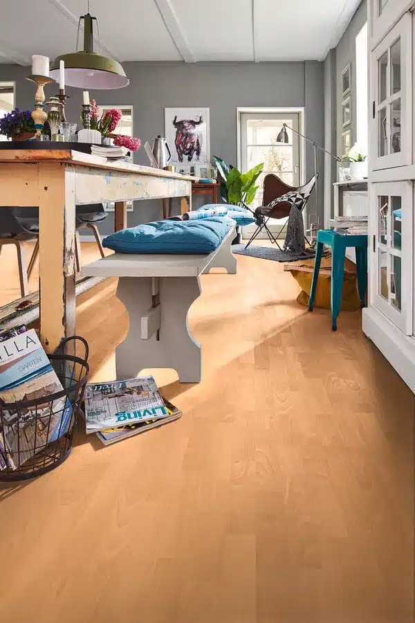 Antiestático, resistente al agua y totalmente resistente a los arañazos: el MeisterDesign. laminate LC 150 es el suelo laminado inteligente para todas las aplicaciones. Con su altura de montaje de 8 mm y una categoría de utilización 23 | 32, es apropiado para áreas domésticas de uso muy frecuente, como el cuarto de baño, o áreas comerciales (p. ej., tiendas o restaurantes). El tablón corto es muy versátil, muy fácil de colocar y de transportar.