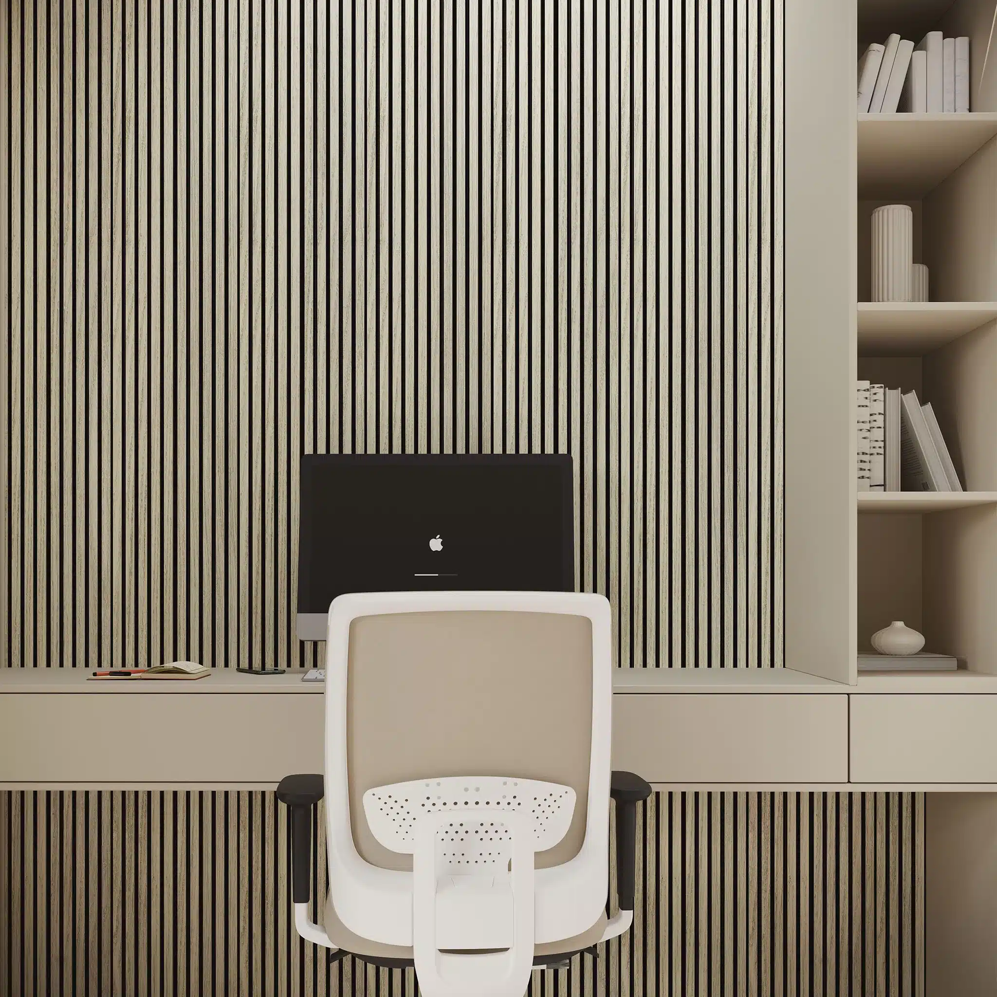 Paneles decorativos de paredes o techos para interior compuestos por cinco listones. Su unión esta diseñada al milímetro para tener una continuidad entre sus lamas, dejando de esta manera una estancia de diseño.