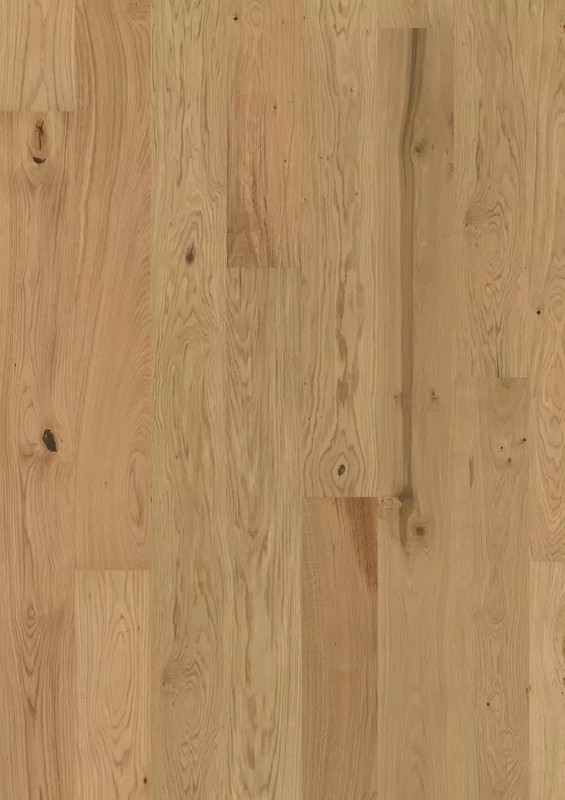 En el modelo Oak Aster Matt, el roble natural brilla en todo su esplendor sin teñirse, permitiendo que su cálido color penetre sin impedimentos en la superficie lacada. Cada tabla se cepilla cuidadosamente, acentuando la veta natural de la madera y suavizando la textura, los nudos y las grietas. Cualquier contraste de color es puramente natural, dejando que la materia prima hable por sí sola. Roble Aster también está disponible en versión aceitada.