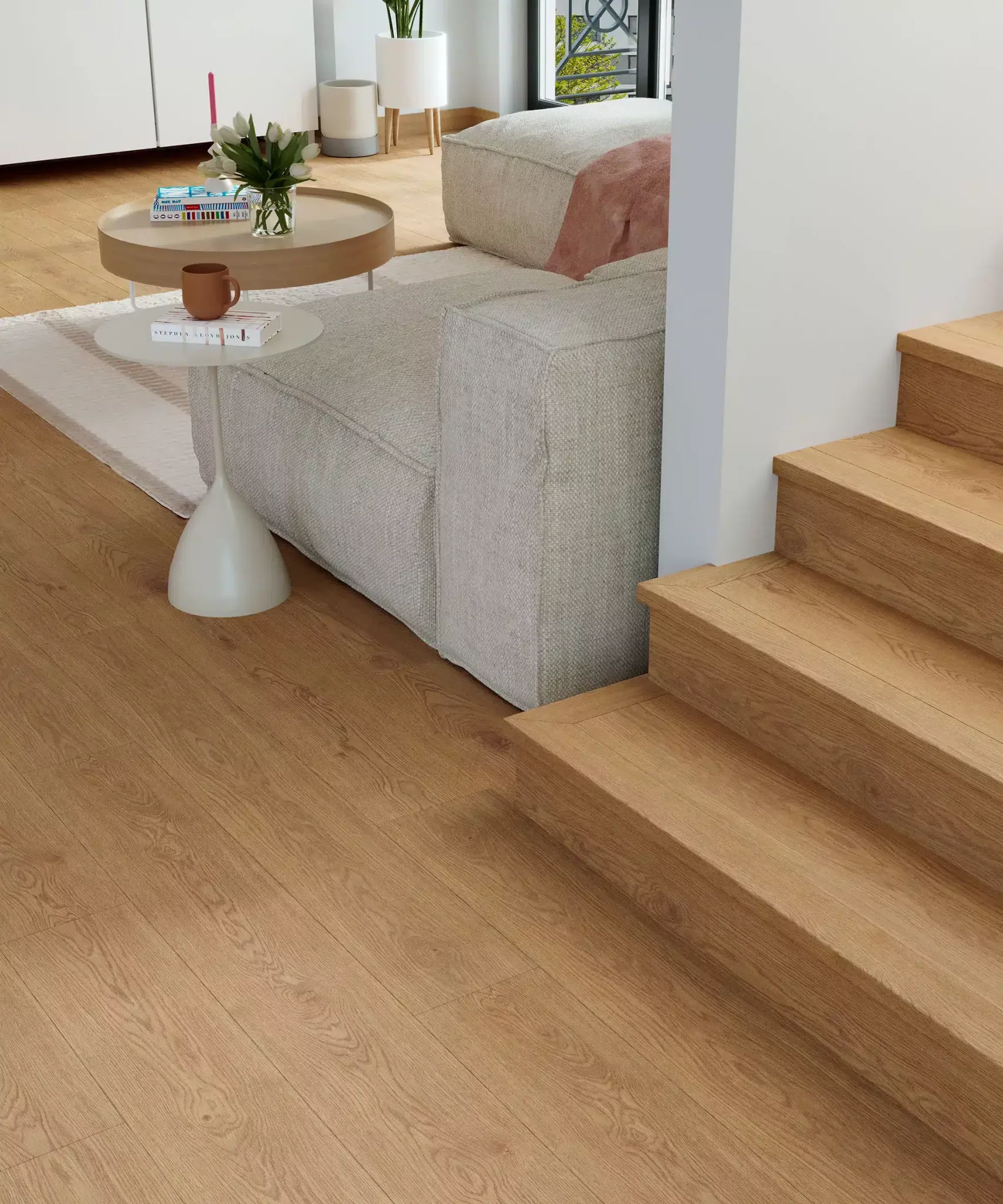 El Roble Ámbar es una excelente reproducción de una madera de roble clásica, simple y elegante. Se caracteriza por su tonalidad dorada, su sutil rusticidad y sus vetas marcadas. Todo ello se ve enfatizado con el nuevo acabado Tibet, extra-mate y de gran profundidad.