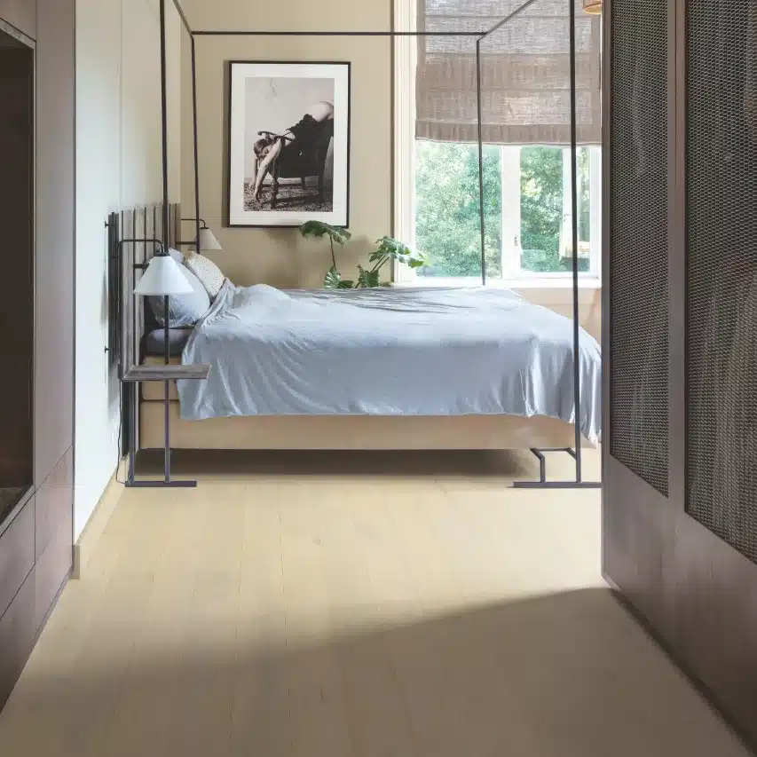 La colección de tarima flotante Amato de Quick Step es acogedora, única e impermeable. Estos suelos de madera resistentes al agua son un sueño para caminar, ya que combinan sin esfuerzo la durabilidad con la belleza natural. Exactamente el tipo de sofisticación que merece tu hogar y adecuado para cualquier habitación, incluidas cocinas y baños.