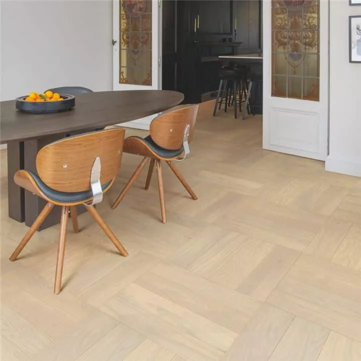 Los suelos de parquet de Quick-Step destacan por su facilidad de uso. Gracias al sistema Uniclic, los suelos de madera se pueden instalar en un tiempo mínimo. Opte por un motivo en espiga clásico o apueste por un divertido patrón tipo cesta. Sea cual sea, la estancia irradiará grandeza de estilo regio.