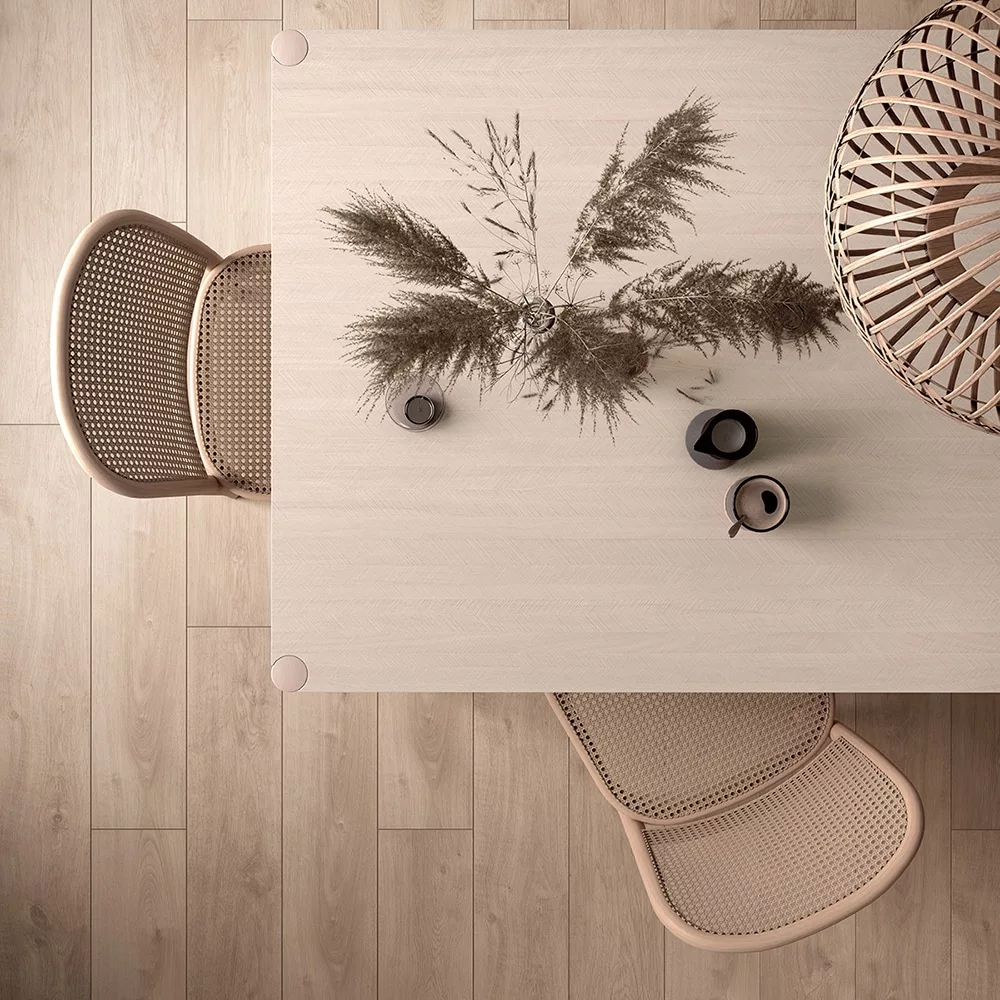 La versatilidad marca el carácter de este Roble Glamour de plena actualidad que resulta cálido y favorecedor en cualquier tipo de estancia. El sutil contraste de color entre sus lamas y el acabado Dry Touch consiguen un aspecto aún más natural.