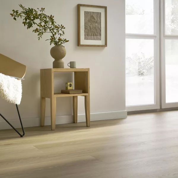 Este suelo vinílico de la colección Amaron Wood Acoustic se distingue por su núcleo mineral HD y su capa aislante integrada, ofreciendo la apariencia de la madera con gran resistencia y confort.
