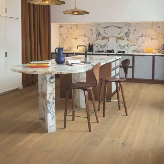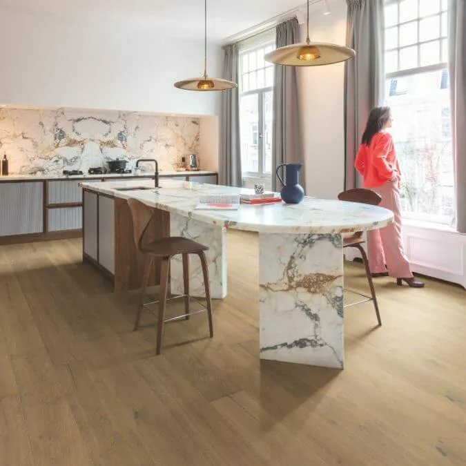 La colección Cascada de Quick Step es acogedora, única e impermeable. Estos suelos de madera resistentes al agua son un sueño para caminar, ya que combinan sin esfuerzo la durabilidad con la belleza natural. Exactamente el tipo de sofisticación que merece tu hogar y adecuado para cualquier habitación, incluidas cocinas y baños.