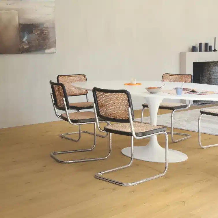 La colección de tarima flotante Amato de Quick Step es acogedora, única e impermeable. Estos suelos de madera resistentes al agua son un sueño para caminar, ya que combinan sin esfuerzo la durabilidad con la belleza natural. Exactamente el tipo de sofisticación que merece tu hogar y adecuado para cualquier habitación, incluidas cocinas y baños.