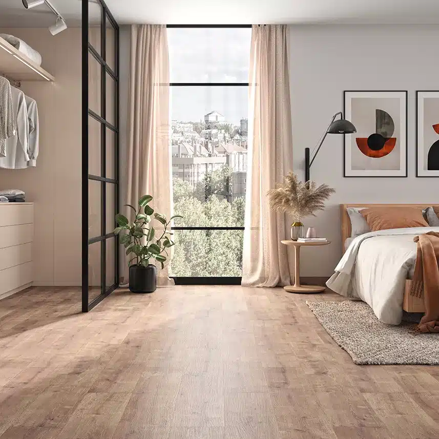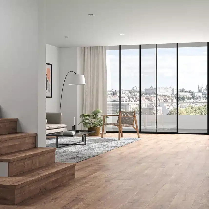 Un diseño tostado lleno de detalles, con nudos marcados y pasajes de color, así es el Roble Tobacco. Todos estos matices en conjunto con el acabado profundo Luxor hacen de este suelo una base natural perfecta para llenar de personalidad todo tipo de espacios.