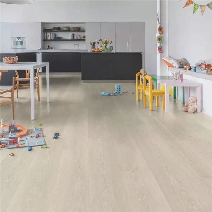 Los Suelos Laminados Quick Step cuentan con una resistencia a las rayaduras diez veces mayor que el resto de suelos, para que pueda disfrutar de un suelo bonito y natural durante más tiempo. Su superficie sellada ofrece una protección excelente contra la humedad que puedan causar, por ejemplo, bebidas derramadas sobre la superficie.